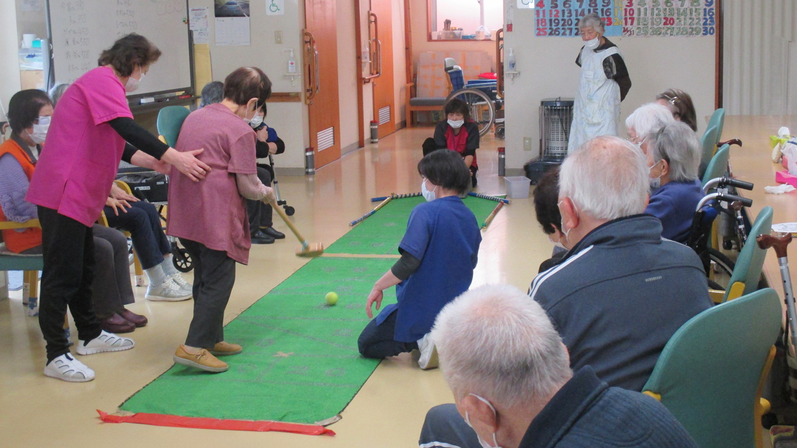 午後の時間帯に週替わりでレクリエーションを行います。椅子に座ったまま行うゲームや立って行うゲーム、時には運も使って笑いあり、悔しさあり?と楽しく行っています。