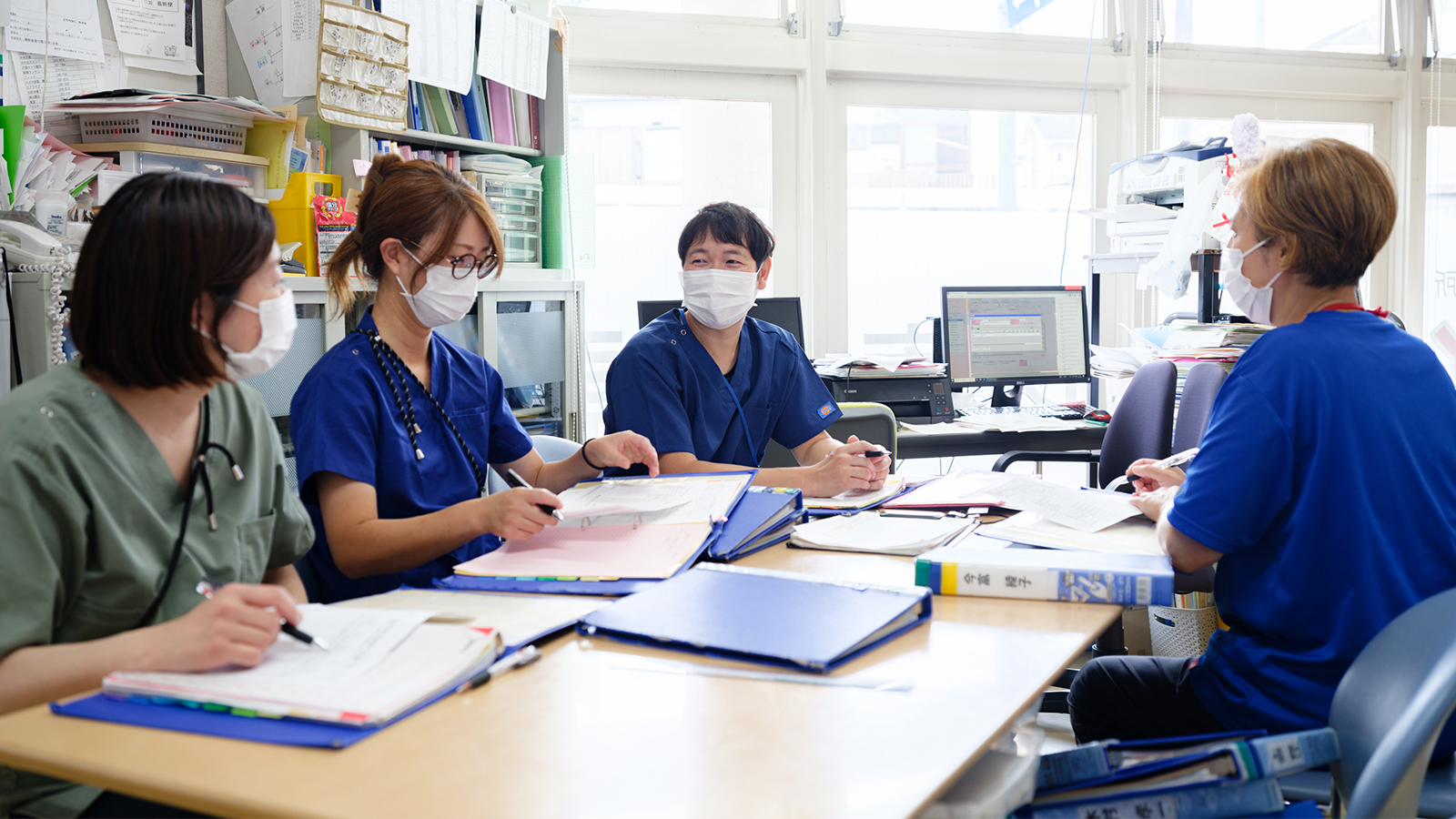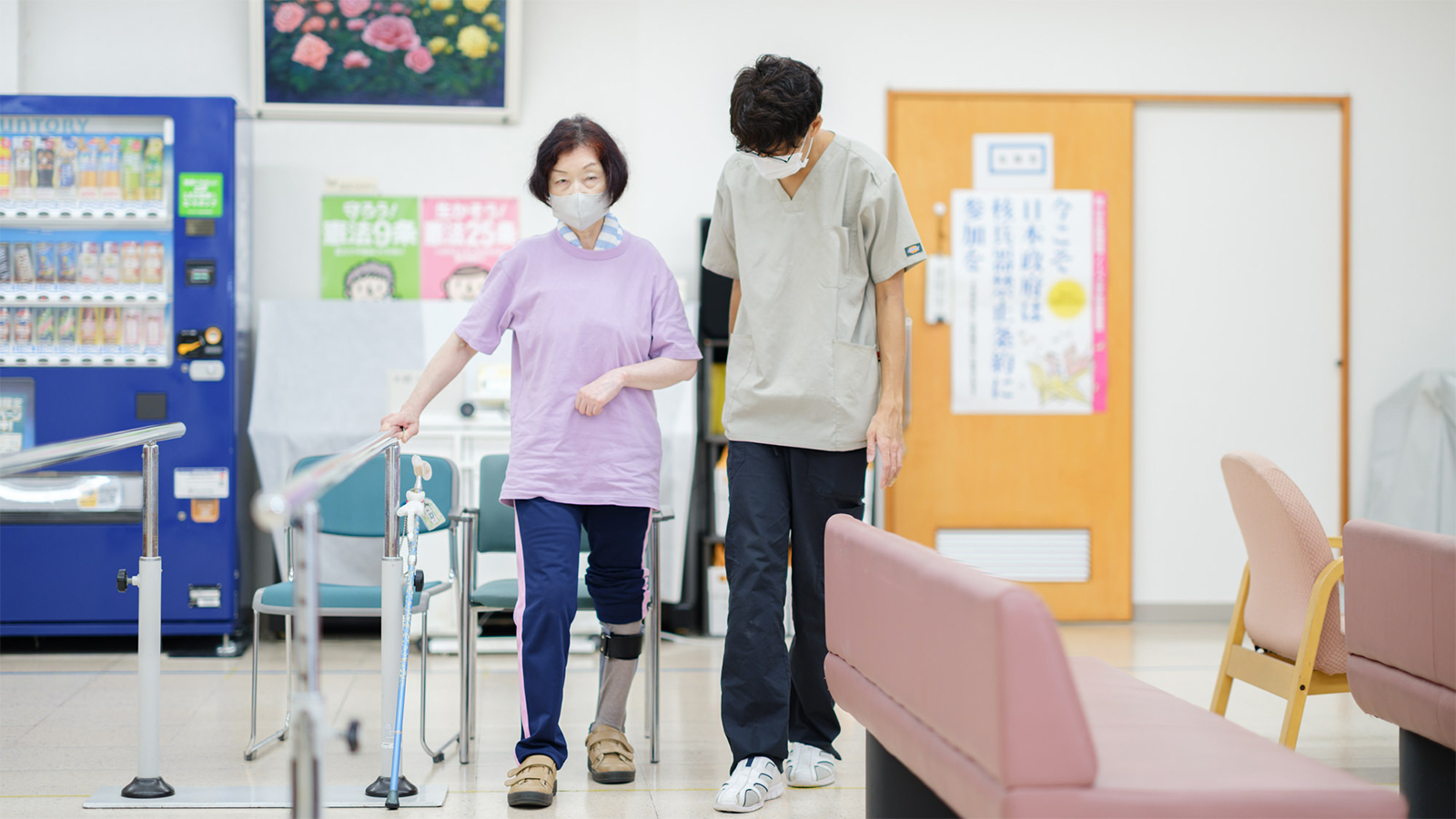 理学療法士、作業療法士、言語聴覚士(月・火のみ)が生活機能の維持・向上を図るために個別訓練や集団体操を行っています。装具作成が必要な場合などは坂総合病院のリハビリテーションション室と連携を取りながら行います。