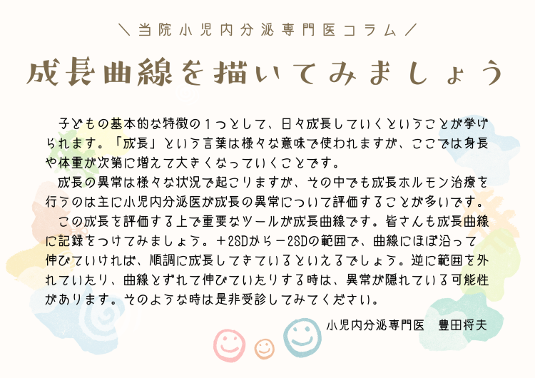 小児内分泌を専門にしている豊田将夫医師のコラムを紹介します。